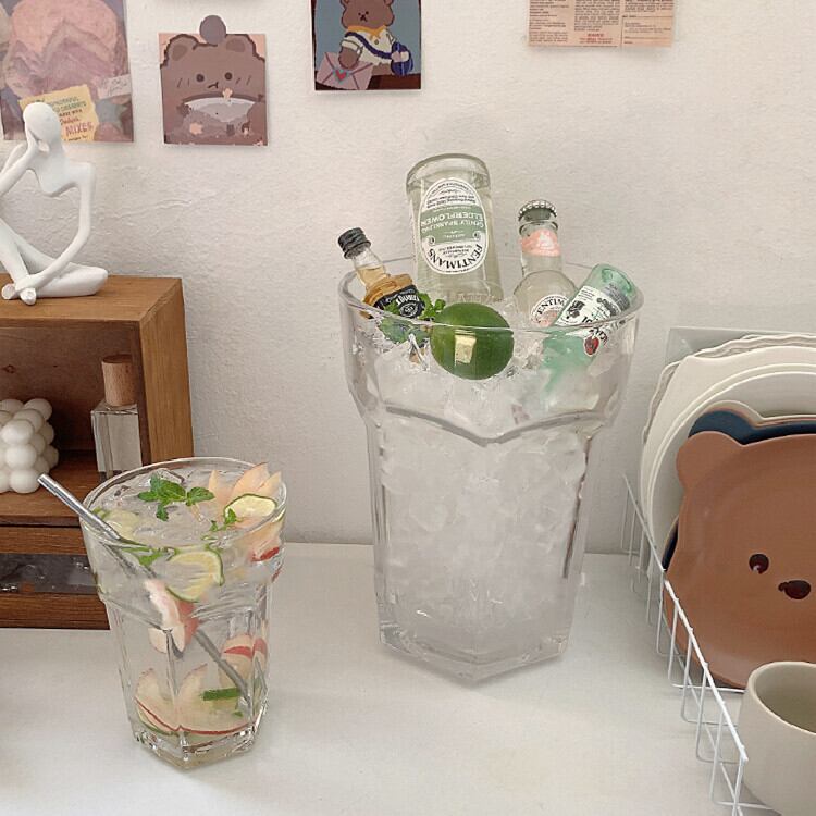 【商品説明】クリアガラスコップになります!サイズは2展開あって、大きいほうにはサングリアやワインを注ぎ、小さいほうのコップで飲んでください?