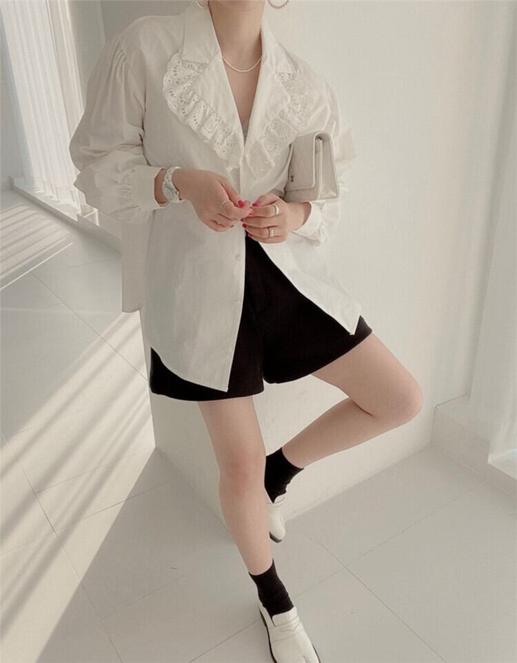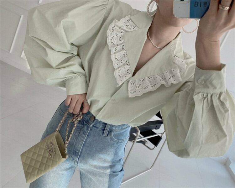 【商品説明】ビッグカラーの襟フリルブラウスです。