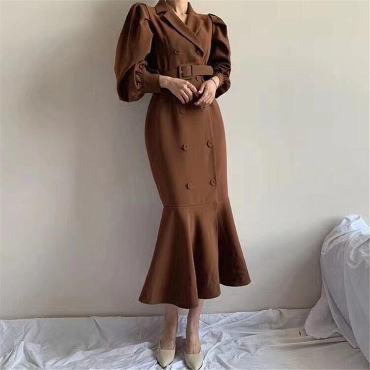 【送料無料】3color レトロパフスリーズワンピース onepiece No. 3001