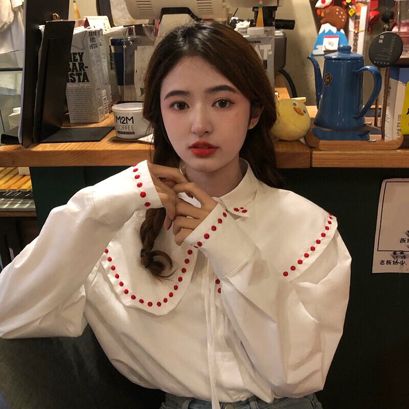 【送料無料】big丸襟 刺繍 シャツ ブラウス tops No.1052