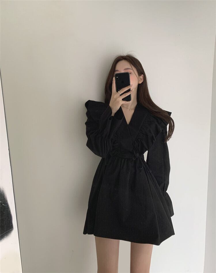【送料無料】3color Vネックフリルワンピース onepiece No. 3012