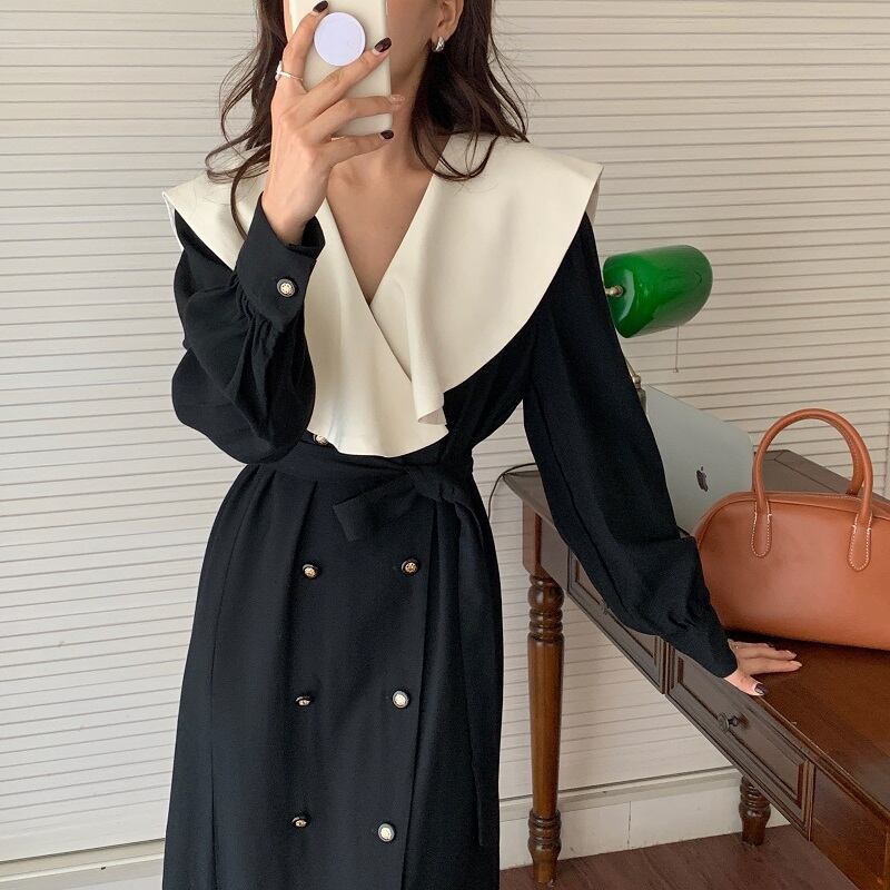 【送料無料】big襟 Vネックフリルワンピース onepiece No. 3013