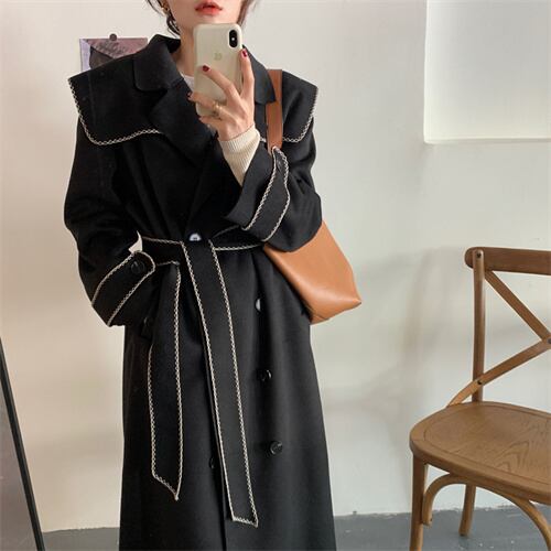 【送料無料】2color パイピングロングコート outer No.6021