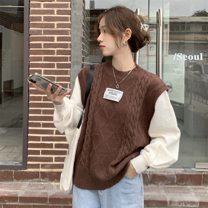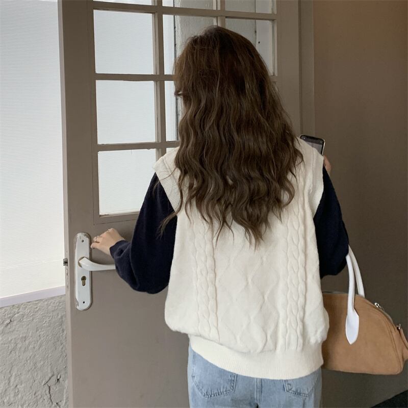【送料無料】2color ニットツイストタグベスト tops No.1078