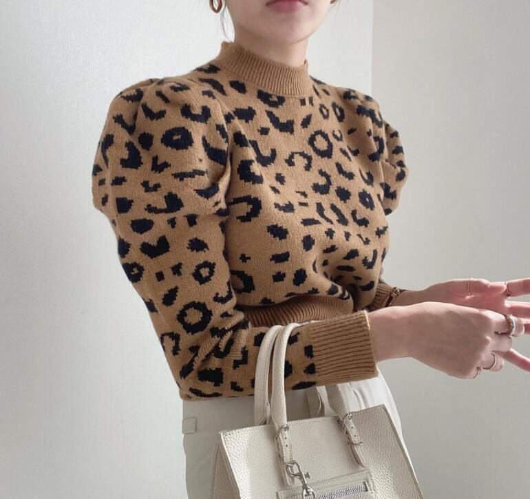 【送料無料】パフスリヒョウ柄ニット tops No.1083