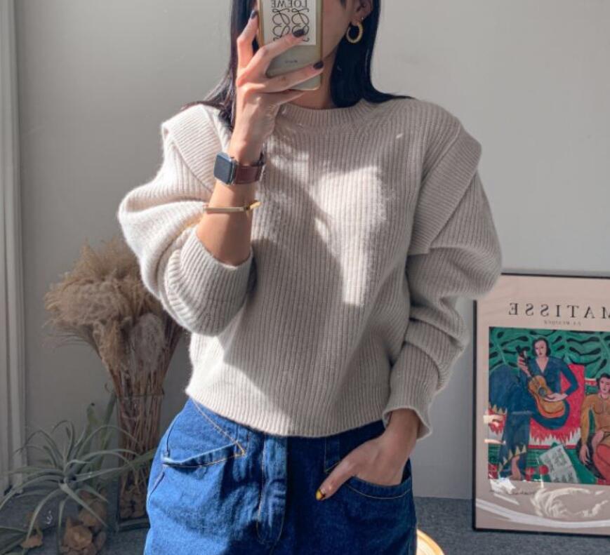 【送料無料】2color ラウンド立体ニット tops No.1089