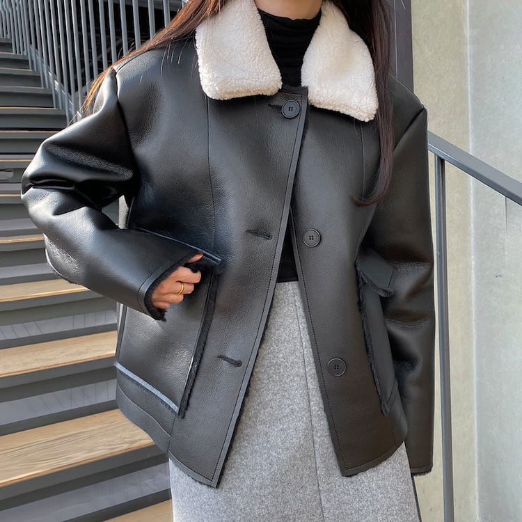 【商品説明】厚手のレザージャケットです!襟はボアになってます!スカートと相性抜群です!