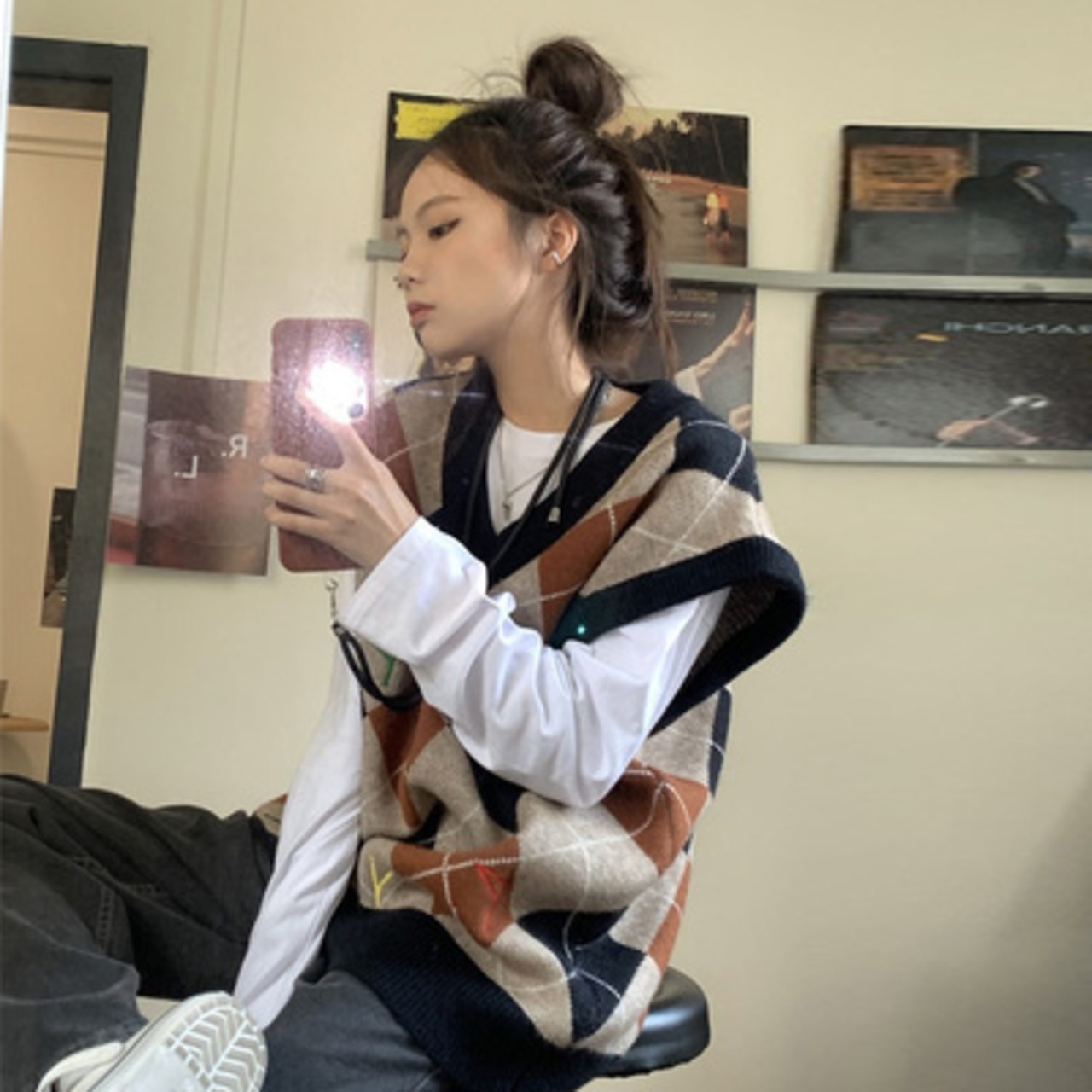 【送料無料】アーガイル刺繍ベスト tops No.1107