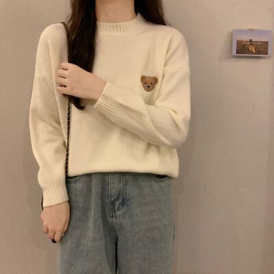 【商品説明】くまさん刺繍がかわいい、ラウンドネックセーターです。