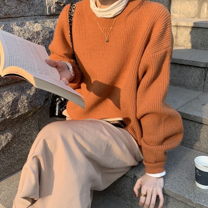 【商品説明】トレンドカラー、オレンジのラウンドネックのニット!ハイネックと合わせるとかわいいです!