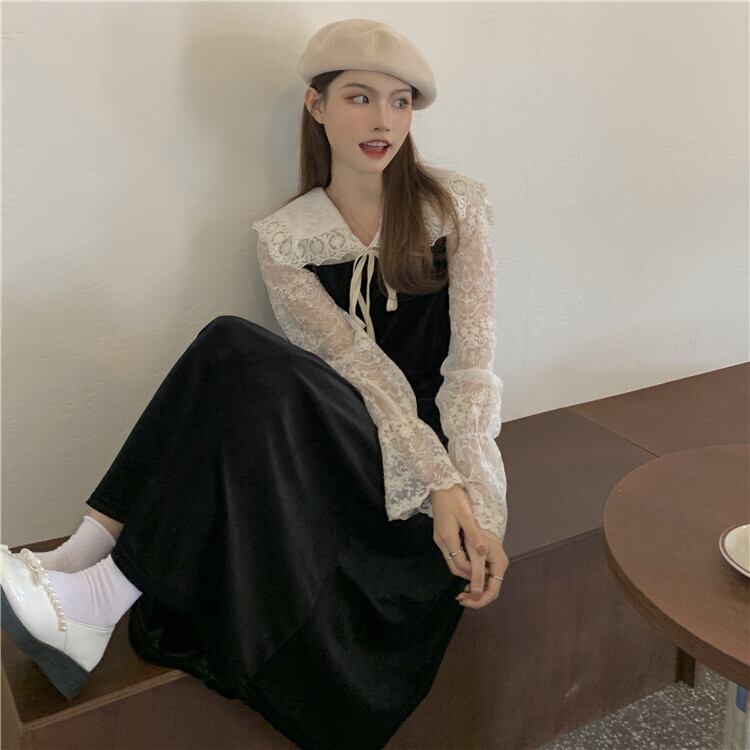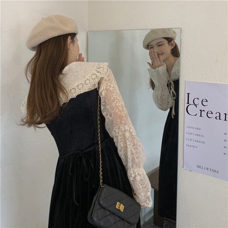 【送料無料】レースベルベットワンピース onepiece No. 3028