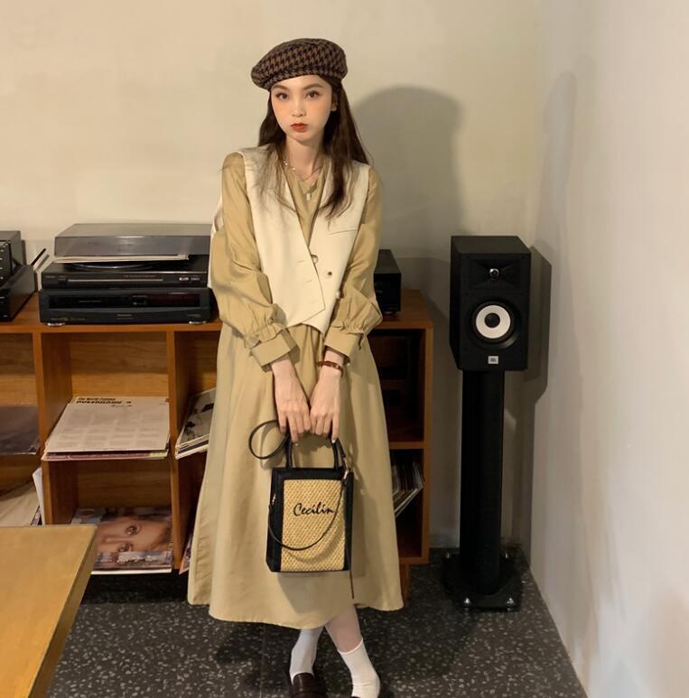 【送料無料】レイヤードベスト付きワンピース onepiece No. 3031