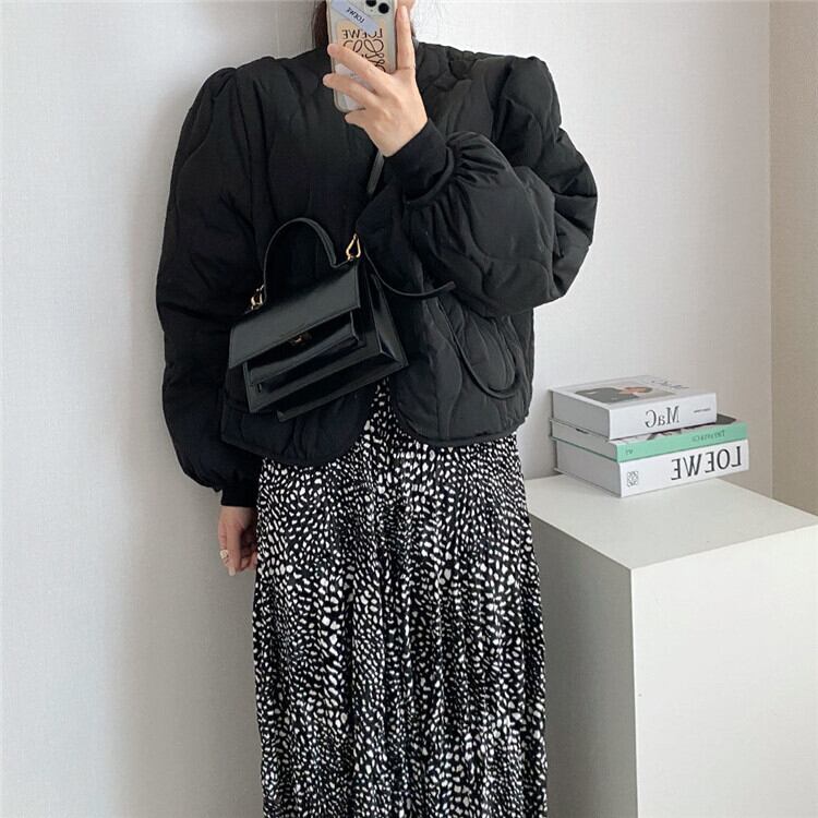 【商品説明】Vネックデザインのダウンコートです!シンプルだけど、パフスリーブになっていて1枚だけどお洒落に着こなせます。
