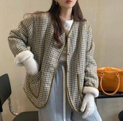 【送料無料】くすみ千鳥柄ジャケット outer No.6047