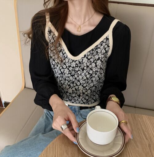 【商品説明】小花柄のニットキャミと、バルーンロンTのセット商品です。
