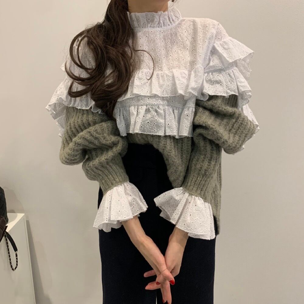 【商品説明】コットンフリルが可愛い、ボリュームニットセーターです。