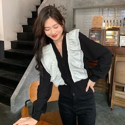 【送料無料】ダブルフリルニットカーディガン tops No.1193