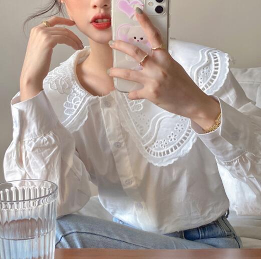 【商品説明】アンティークデザインの2重レース刺繍がポイントのbigカラーブラウスです!